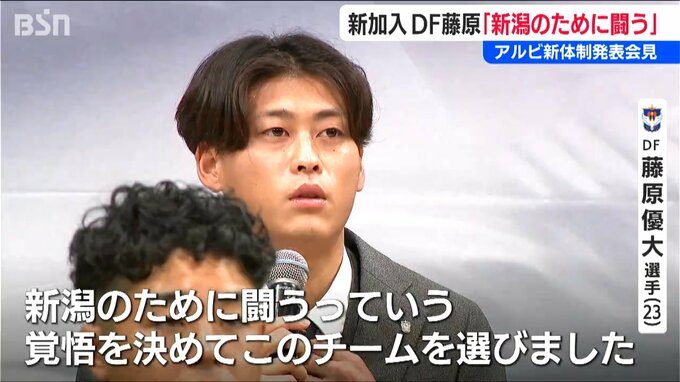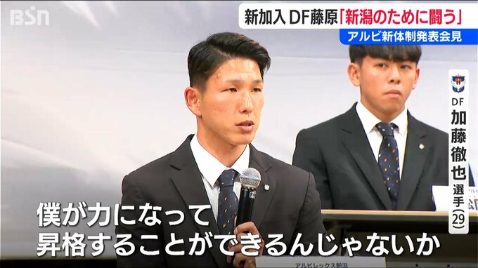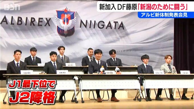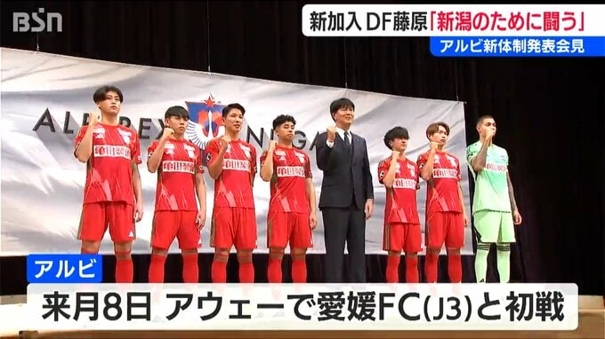今シーズンJ2で戦うアルビレックス新潟。新体制の発表会見が6日開かれ、7人の新加入選手が意気込みを語りました。