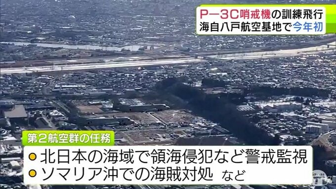 2026年初の「P-3C哨戒機」の訓練飛行を実施 青森県八戸市・階上町・おいらせ町の上空を1時間半ほどかけて飛行 海上自衛隊八戸航空基地第2航空群 青森テレビ 2026年1月7日(水) 06:05 国内