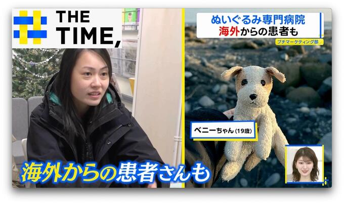 19歳になる犬のぬいぐるみ・ベニーちゃんの治療を終え迎えに来たのは、シンガポールから来日した母娘。