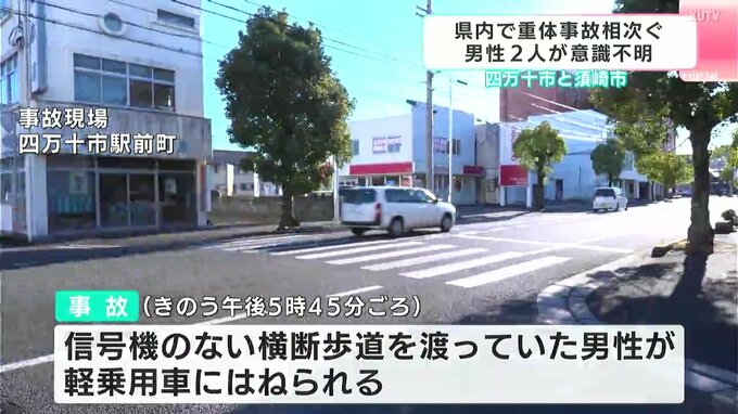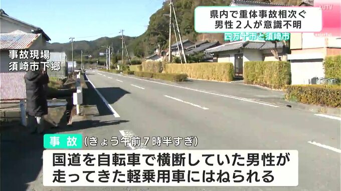 高知県内で重大な事故が相次いでいます。四万十市と須崎市で、道路を横断中の歩行者や自転車が車にはねられ、2人が意識不明の重体です。