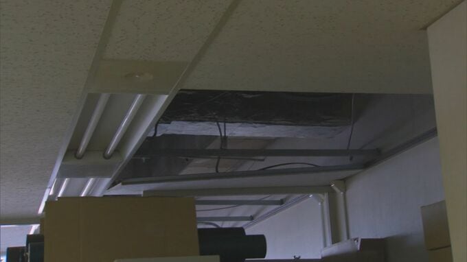 被害を最小限に防ごうと職員が落ちかけた天井を取り外し、業務を続ける部署もありました。