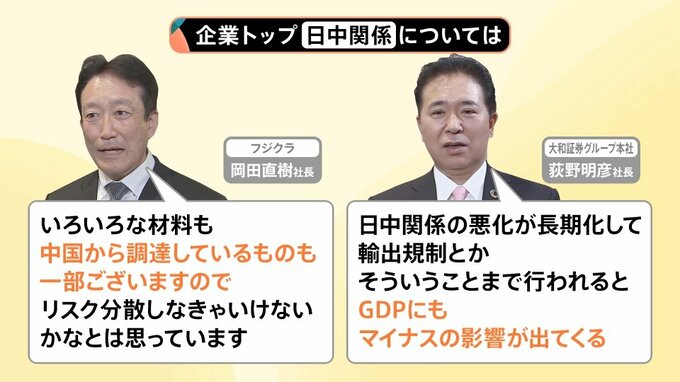 そして、▼大和証券グループ本社の荻野明彦社長は、中国から日本への渡航自粛は、全体への影響は大きくないとした上で、「日中関係の悪化が長期化して、輸出規制とかそういうことまで行われると、GDPにもマイナスの影響が出てくる」と懸念しています。