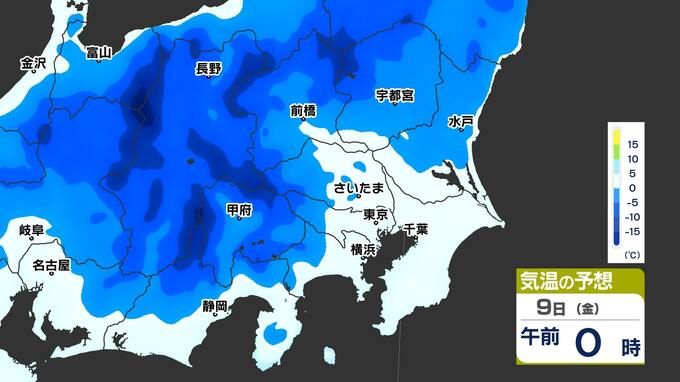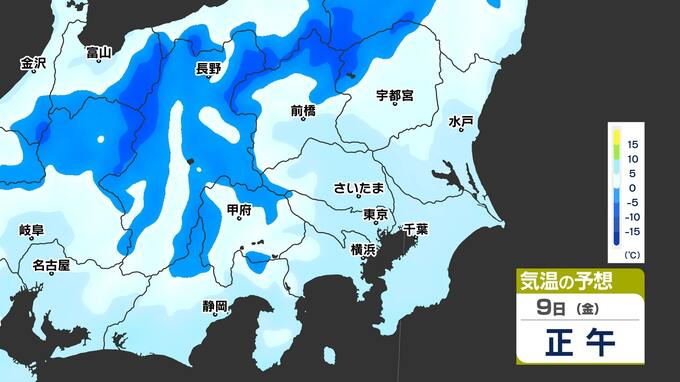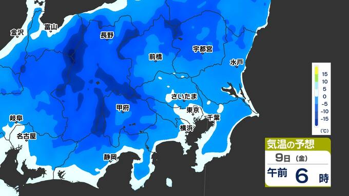 【東京首都圏 雪?】 東京 ー0.3℃ さいたま市 ー4.7℃ 9日(金)も寒い「雪が心配」【雪シミュレーション/ 関東各都市の週間予報(3連休は?)】東京・神奈川・埼玉・千葉・群馬・茨城・栃木 南日本放送 2026年1月6日(火) 19:00 国内 天気 気温のシミュレーション9日(金) 朝は氷点下の冷え込みのところが多いでしょう。黄緑色が10℃以上、黄色が15℃以上ですが、残念ながら黄緑や黄色はほとんど出てきません。