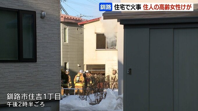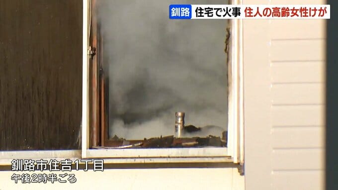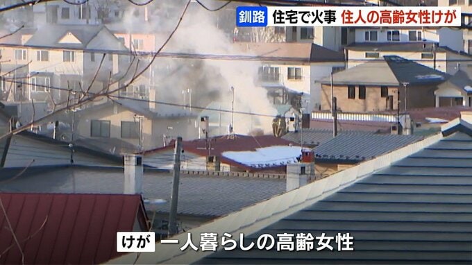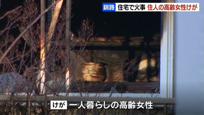 6日午後、北海道釧路市の住宅から火が出て、1人暮らしの高齢の女性が気道にやけどを負うけがをしました。