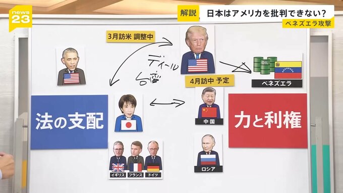 今回のベネズエラ問題は、その最中に起きたため、高市総理がトランプ大統領に苦言を呈すと、「もう来なくていい」となる可能性があり、はっきりとした物言いができないという事情です。