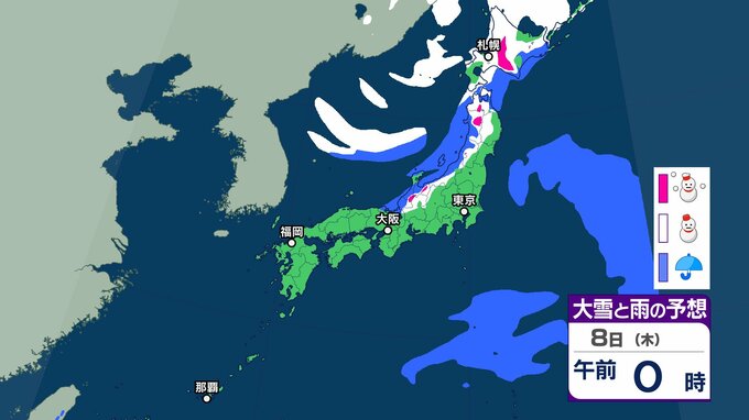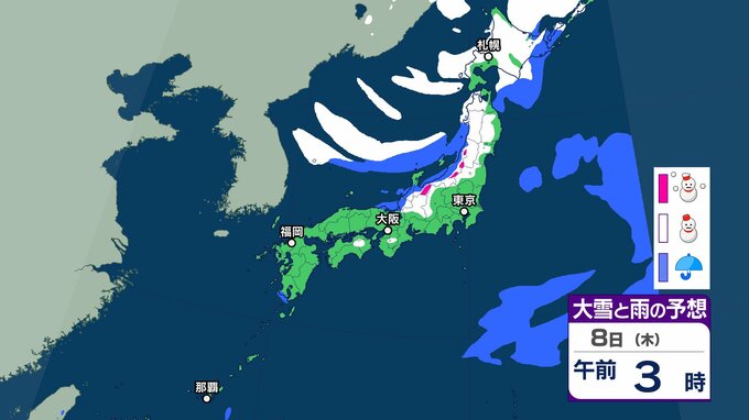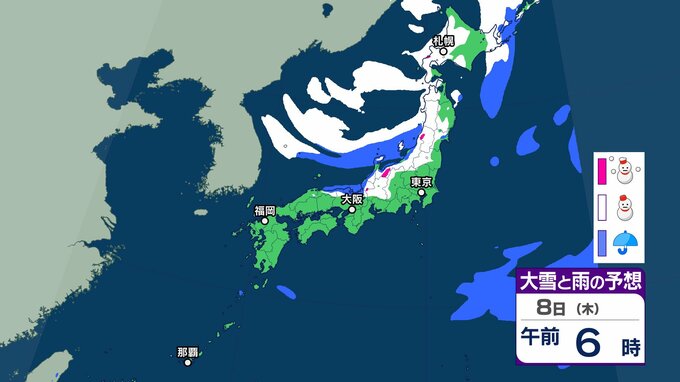 【大雪情報】3連休(成人の日) 今季“最強クラスの寒波”到来→日本海側は警報級の大雪、吹雪に警戒 近畿・中国・四国・九州など西日本の平野部でも降雪のおそれ 交通機関への影響など注意【気象庁雪雨シミレーション/8日午後8更新】 14時間前