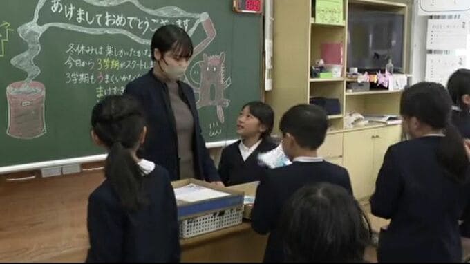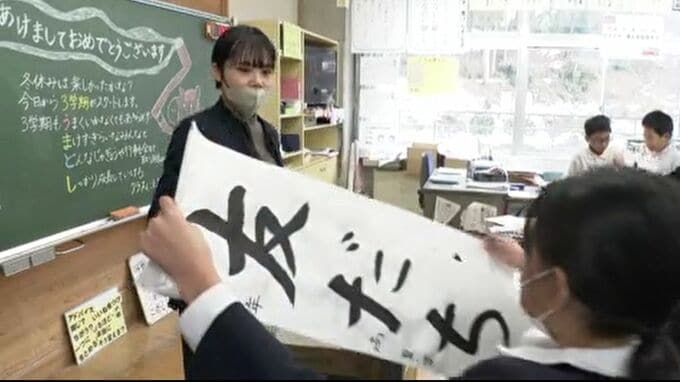 子どもたちは漢字のプリントや書き初めなどの宿題を提出し、学年最後の学期をスタートしました。