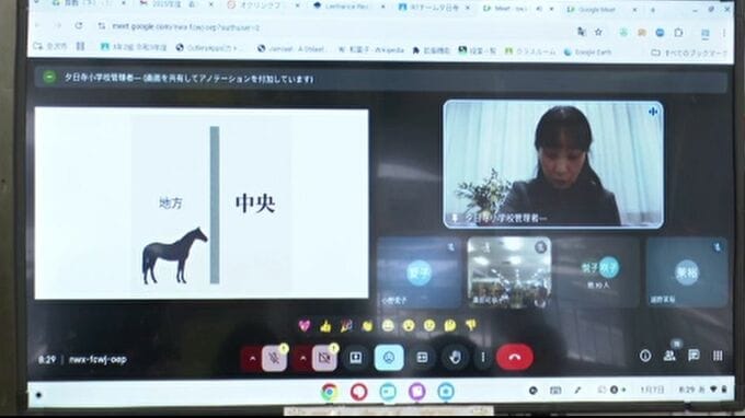 全校児童が222人の金沢市の夕日寺小学校では、寒さ対策やインフルエンザの感染を防止するため、それぞれの教室でリモート形式による始業式が行われ、高木布三代校長は、午年にちなんで、ファンから愛され活躍したかつての競走馬にたとえ、「友達と支え合い認め合いながら自分の力を少しずつ伸ばしていってください」と呼びかけました。