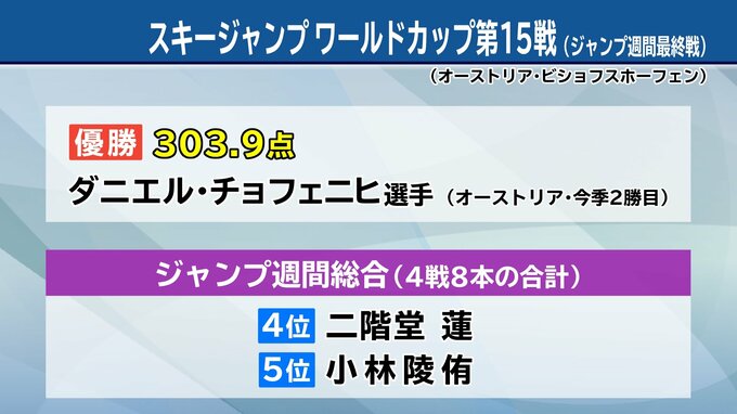 優勝はオーストリアのダニエル・チョフェニヒで合計303.9点をあげ、今シーズン2勝目です。