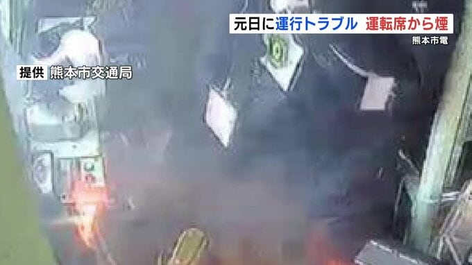 熊本市交通局は、この元日に運行中の市電の運転席から火花や煙が上がるトラブルが発生したことを明らかにしました。