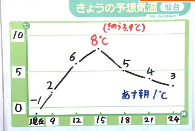 ■栗原市駒ノ湯:-9.8℃ ■大崎市古川:-8.1℃