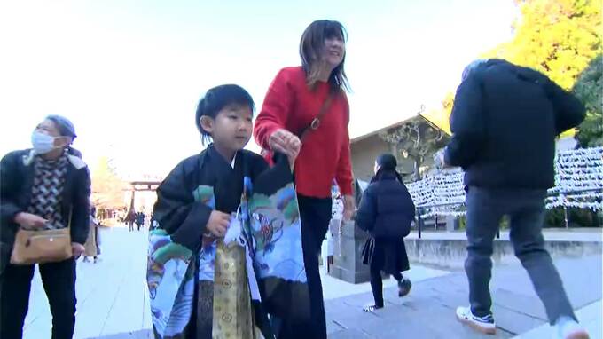 鹿児島市の護国神社にはきょう7日、晴れ着姿の子どもたちが家族に手を引かれてお参りに訪れていました。