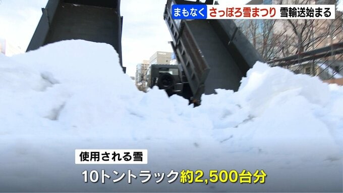 2月4日に始まるさっぽろ雪まつりに向けて、7日、雪像制作に使われる雪の運び込みが始まりました。