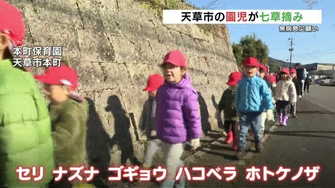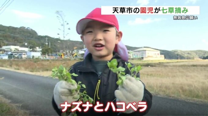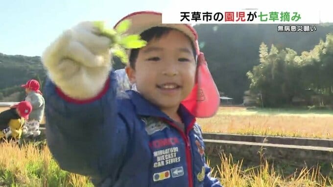 今日(1月7日)といえば、無病息災を願う七草粥(ななくさがゆ)の日です。熊本県天草市の保育園児が、春の七草摘みに出かけました。