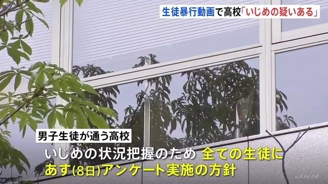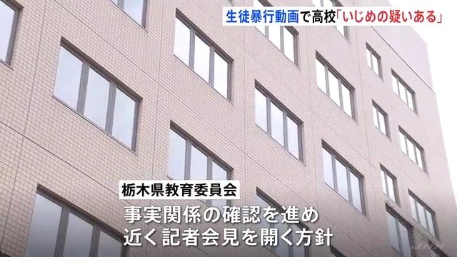 「いじめの疑いがあると認識」SNS上で拡散の栃木県立高校の男子生徒の暴行動画めぐり学校側がコメント TBSテレビ 2026年1月7日(水) 12:02 国内 全ての生徒にアンケート実施の方針「指導を徹底」 また、いじめの状況を把握するため、全ての生徒に対し、あす(8日)アンケートを実施する方針だということで、「全ての生徒に指導を徹底していきたい」としています。 県の教育委員会は事実関係の確認を進め、近く記者会見を開く方針です。