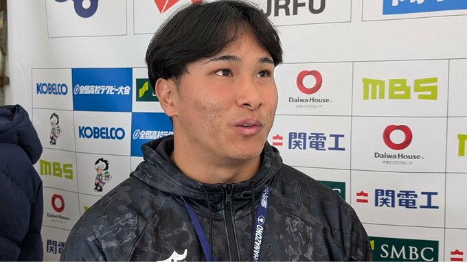 一方、京都成章の圧力の前に、前半は押し込まれる展開が続いた東福岡。それでも前半終了間際の27分、東福岡らしいここぞというときの集中力をみせてトライをとり切ります。