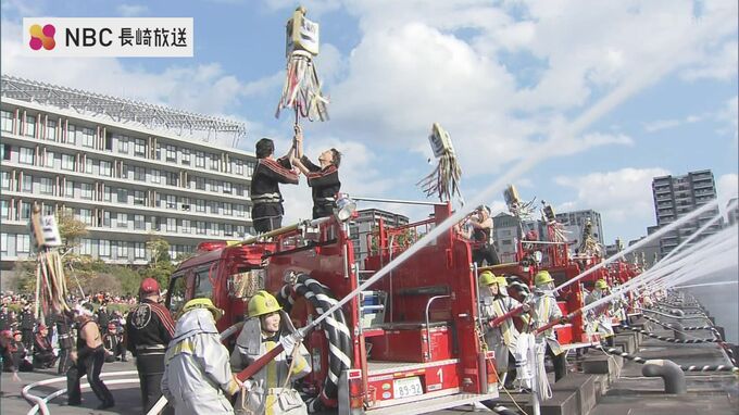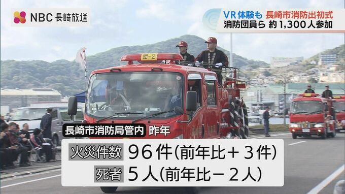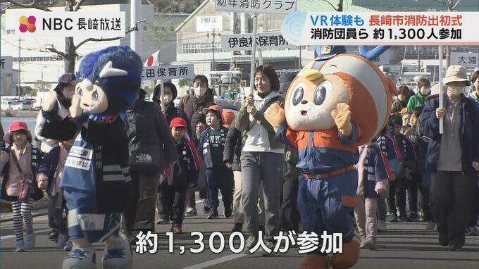 新春恒例の消防出初式が7日長崎市で行なわれ、初めてVRゴーグルを使った救急活動体験のイベントも開かれました。