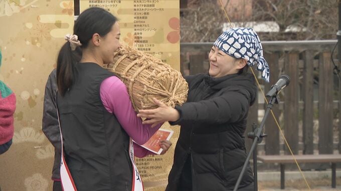 浅野さんは去年、中津川市の西宮神社で行われた福男選びの神事に参加。この時は1位を逃しましたが、今回は見事“最強の福女”に。お米1俵などを贈られました。