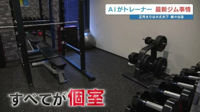 記者「中に入って通路を進むと3つのトレーニングスペースがあり、3つ全てが個室となっています」