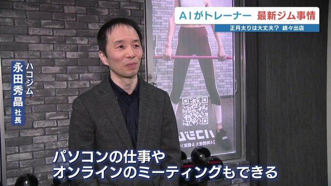 ハコジム 永田秀晶社長「少しエクササイズをした後、机とイスがあるのでパソコンの仕事やオンラインのミーティングもできる」