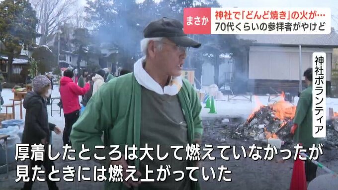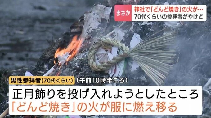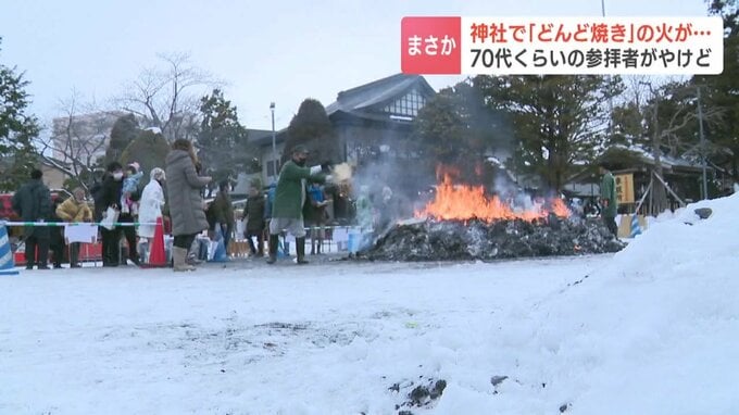 7日、北海道函館市の神社で行われていた「どんど焼き」で、正月飾りを投げ入れようとした参拝者の男性の服に火が移り、男性がやけどを負いました。