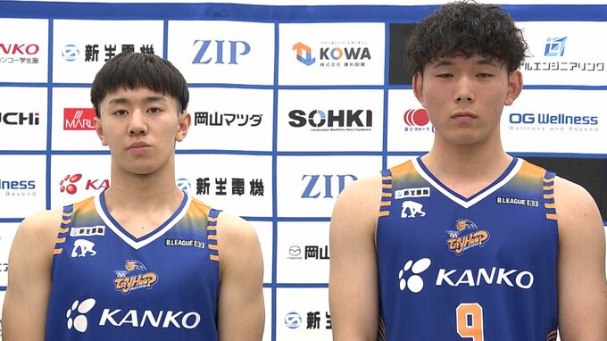 バスケットボールB3リーグのトライフープ岡山に特別指定選手として岡山市出身の2人の選手が加入することになり、入団記者会見が開かれました。
