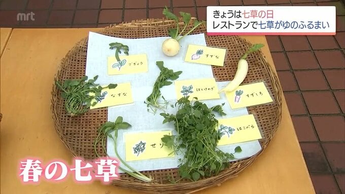 1月7日は、七草の日です。宮崎市のレストランでは七草がゆがふるまわれました。(三浦功将記者)「今年一年の無病息災を願って、多くの市民が今年も七草がゆを求めて集まっています」椎葉村で採れたセリやナズナ、…