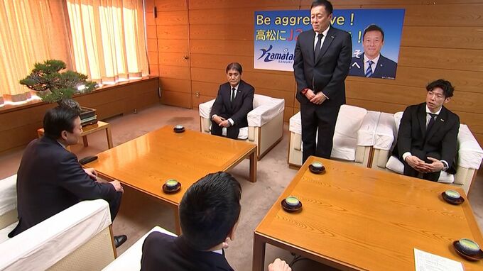 高松市役所を訪れたのは、カマタマーレ讃岐の大嶽直人新監督と増田勝社長らです。昨シーズン、降格圏での厳しい戦いが続いたカマタマーレ讃岐は、新監督に元日本代表で、FC大阪などで監督を務めた大嶽氏を迎えました。選手・スタッフも大幅に入れ替え、心機一転、百年構想リーグに臨みます。