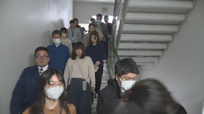 職員らは地震発生直後、その場にしゃがみ頭や体を守る基本動作「シェイクアウト」を実施。14階建ての庁舎からおよそ2000人の職員が階段を使って1階に避難しました。