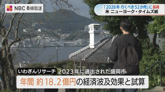 ニューヨーク・タイムズが2023年に選出した岩手県盛岡市では年間およそ18.2億円の経済波及効果があったと試算されていて、長崎でも今後、さらなる訪問客の増加や観光業の盛り上がりが期待されます。