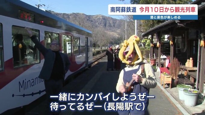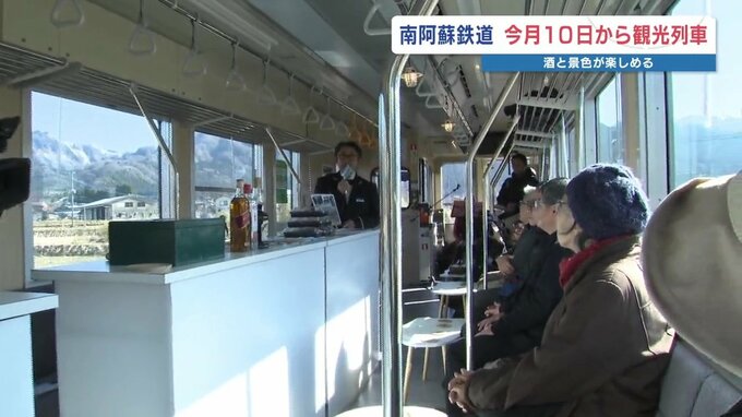 南阿蘇鉄道が、阿蘇の新酒を楽しめる冬場限定の観光列車の運行を始めます。1月7日、試乗会が行われました。
