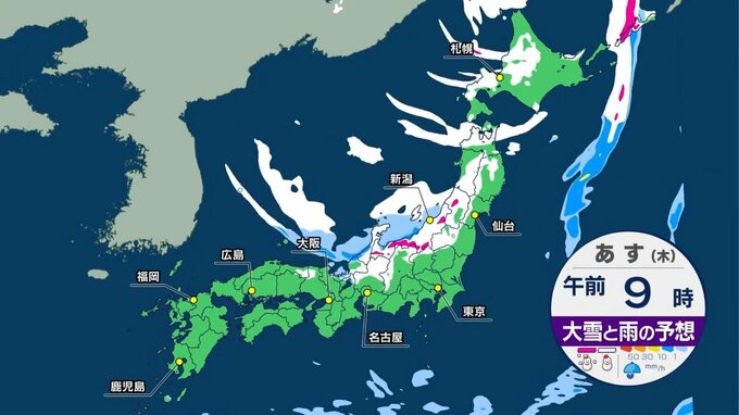 木曜日は一時的に冬型の気圧配置となり、日本海側で雪の範囲が広がりそうです。