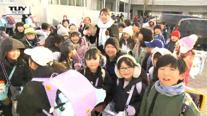大内希美アナウンサー「まもなく朝8時。山形市内は空気がツンとしていてとても寒いです。そんななか子どもたちはきょうから学校!おはようございます」