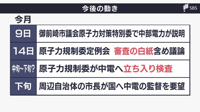 また、規制委員会による中部電力への立ち入り検査、原発の周辺自治体による国への要望などが続く見通しです。