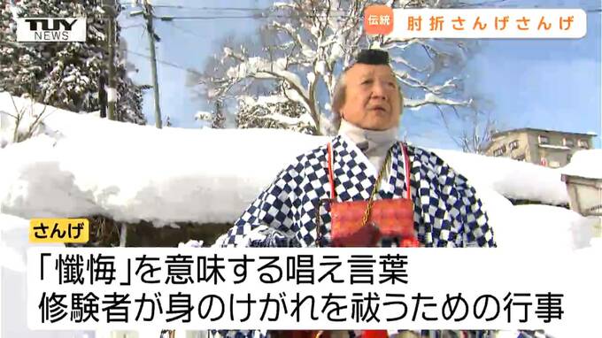 「さんげ」とは、「懺悔」を意味する唱え言葉で、かつて修験者が出羽三山に向かう際に身のけがれを祓うためにこの行事を行っていました。