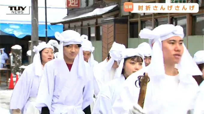 山形県内有数の豪雪地大蔵村の肘折温泉では、一年の無病息災などを願う新年の伝統行事が行われ賑わいをみせました。