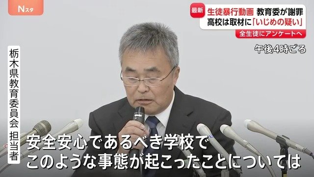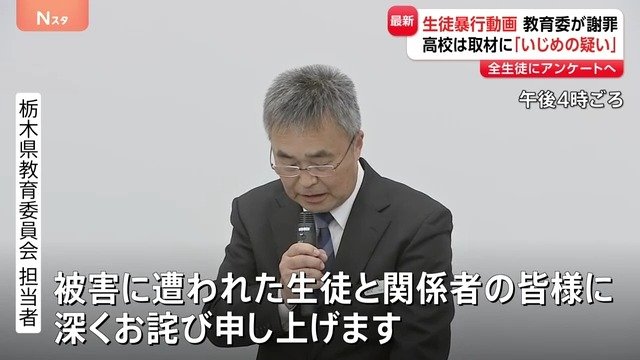 栃木県の県立高校の男子生徒が暴行を受けている動画がSNSで拡散した問題について、県の教育委員会が記者会見を開き、被害を受けた生徒らに謝罪しました。