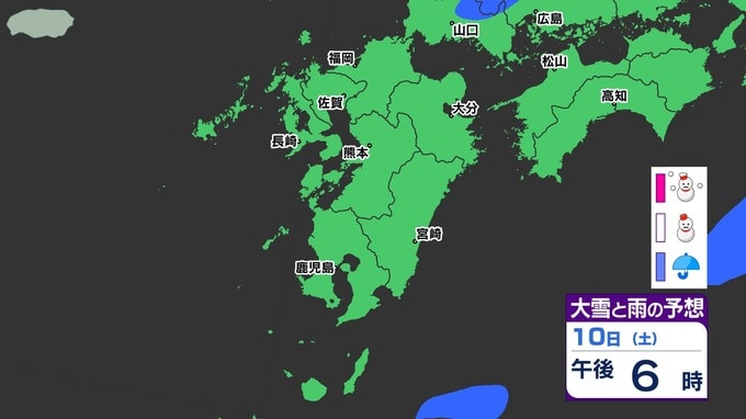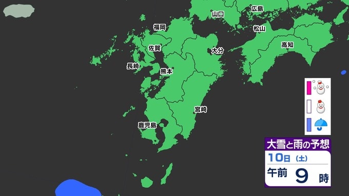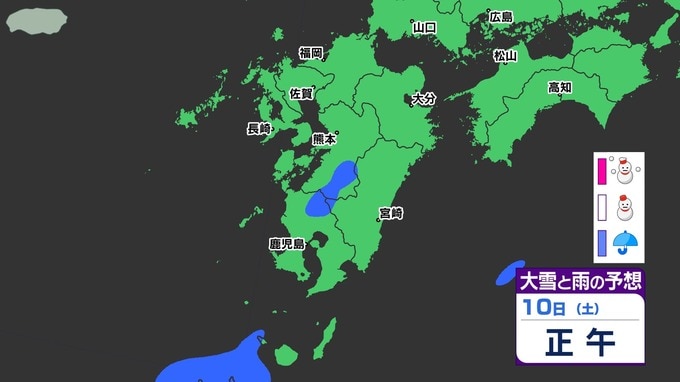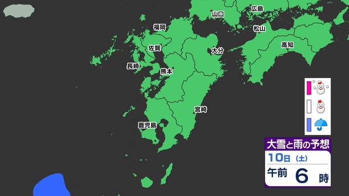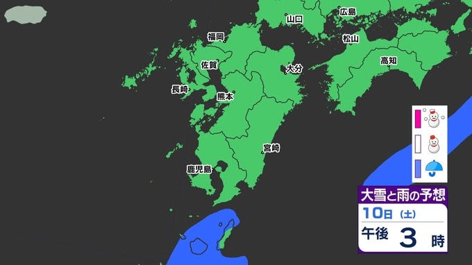 【3連休は「雪?」】九州地方 雪の予報「雪はいつ どこで」【雪シミュレーション10日(土)~12日(月祝) / 九州各都市の週間予報(3連休は?)】福岡・佐賀・長崎・大分・熊本・宮崎・鹿児島 南日本放送 2026年1月7日(水) 20:30 国内 天気 雪シミュレーション10日(土)~12日(月祝) 10日(土)は南から暖かい空気が流れ込むため、雪が降ることはありませんが 寒気が強まる11日(日)~12日(月祝)は、広範囲に雪がシミュレーションされています。 この記事をはじめから → 3連休の九州は「雪の予報」雪シミュレーション / 九州各都市の週間予報」