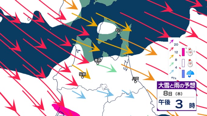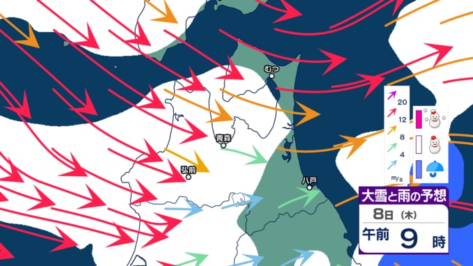【大雪情報】青森県 明日8日未明から津軽や三八上北の山沿いで「警報級の大雪」の可能性も… 週末も“雪の影”がかかり続けるところも… 最新の予想は?【大雪・雨・風のシミュレーションあり】 青森テレビ 2026年1月7日(水) 21:50 国内 ♦この記事の画像をもっと見る ♦最初から記事を読む ♦大雪・雨・風の予想シミュレーション(7~8日・9日・10日・11日・12~13日)