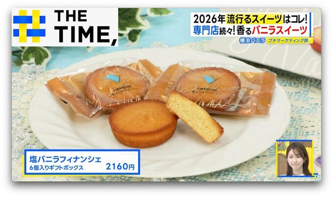 看板商品の「塩バニラフィナンシェ」(6個入りギフトボックス・2160円)は、バニラの香りを引き立てるため、通常使われることの多いエッセンスではなく「バニラエキスの原液」を使用。仕上げにふりかけたアンデスの岩塩が絶妙なアクセントになっています。