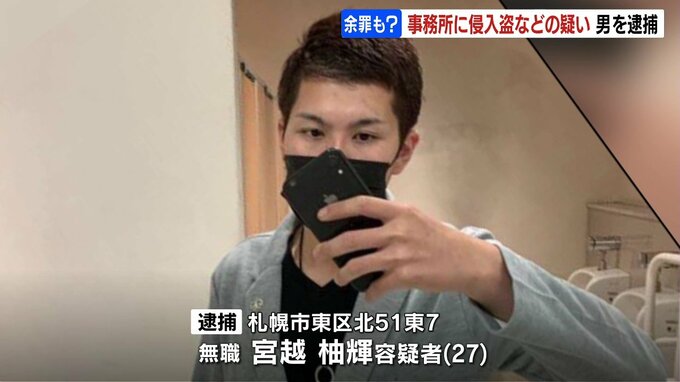 札幌市東区北51条東7丁目に住む無職・宮越柚輝(みやこしゆずき)容疑者(27)は2025年11月、別の男と共謀して北区北30条西11丁目のビルに入る事務所2か所に侵入し、現金5万7000円を盗むなどした疑いが持たれています。
