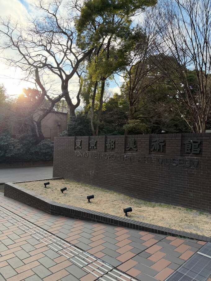 訪問先は上野公園にある「東京都美術館」で、煉瓦造りの壁に刻まれた館名が写真に収められています。木漏れ日に照らされ、冬晴れの天気にも恵まれたようです。