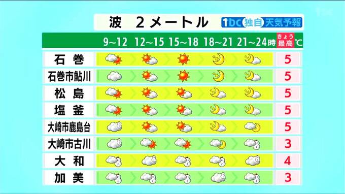 ■石巻:最高気温5℃ ■石巻市鮎川:最高気温5℃