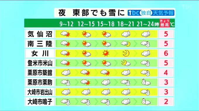 ■女川:最高気温6℃ ■登米市米山:最高気温5℃