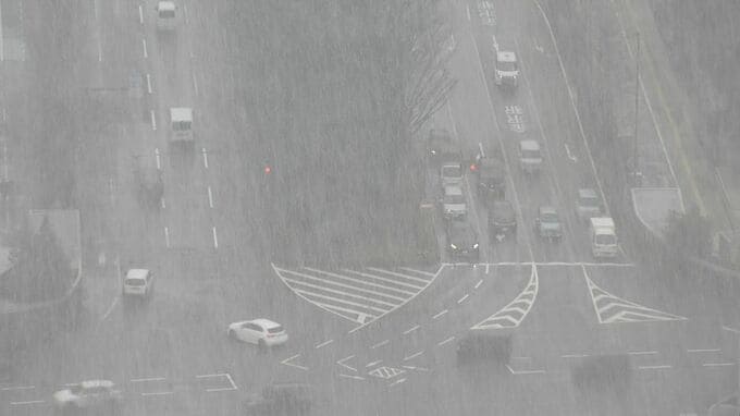 金沢市では午前9時ごろから雨が雪に変わり、時折吹雪く時間帯もありました。