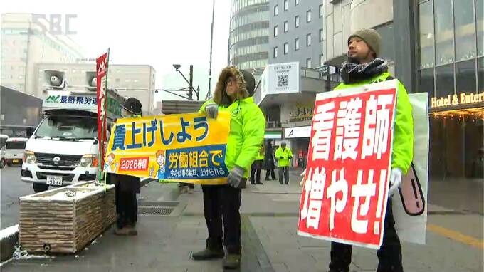 春闘に向け、県労働組合連合会などが長野市で宣伝活動を行い、賃金の引き上げなどを訴えました。県労連 細尾俊彦議長:「昨今の好調な賃上げ動きがあっても、それを最悪の物価高がすべて飲み込んでしまっている」…