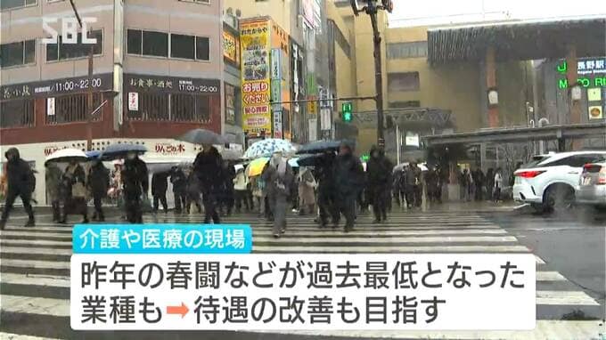 春闘に向け、県労働組合連合会などが長野市で宣伝活動を行い、賃金の引き上げなどを訴えました。