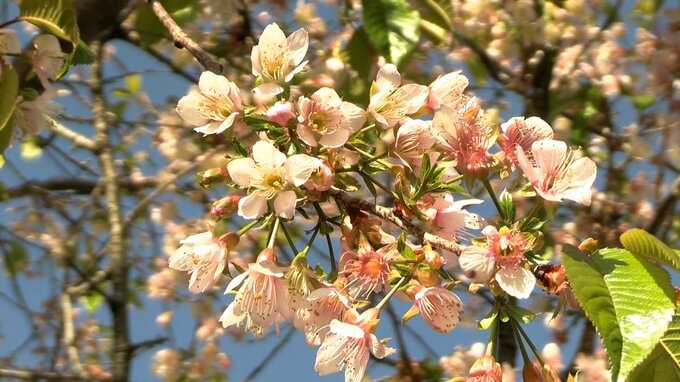冬に花をつける「ヒマラヤザクラ」です。倉敷美観地区にほど近い公園・阿知フラワーポッケで見ごろを迎えています。ヒマラヤ周辺の高山地帯を原産とする品種で、寒さが厳しくなった先月(12月)下旬から咲き始めました。通りがかりの観光客や地元の人たちが、春を思わせるサクラの花に見入っていました。
