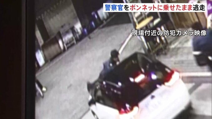 大阪府岸和田市の商店街で乗用車が警察官をボンネットに乗せたまま逃走。およそ700メートルにわたって走る様子が防犯カメラに写っていました。商店街を走る車に警察官が停止を求めます。車はその後、急加速。ボン…
