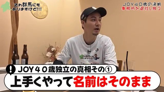 ストーリーズには、JOYさんのYouTube「それ群馬にもありますけど!!」へのリンクが掲載されていて、JOYさんは共演の大井洋一さんとユージさんに「事務所の方を退所しまして」「今年からフリーということで活動していくことになりました」と報告。円満退社での独立であることを強調しつつ、「名前はそのまま」「マネージャー引き連れ」「HPありの個人事務所も作る」と説明しています。